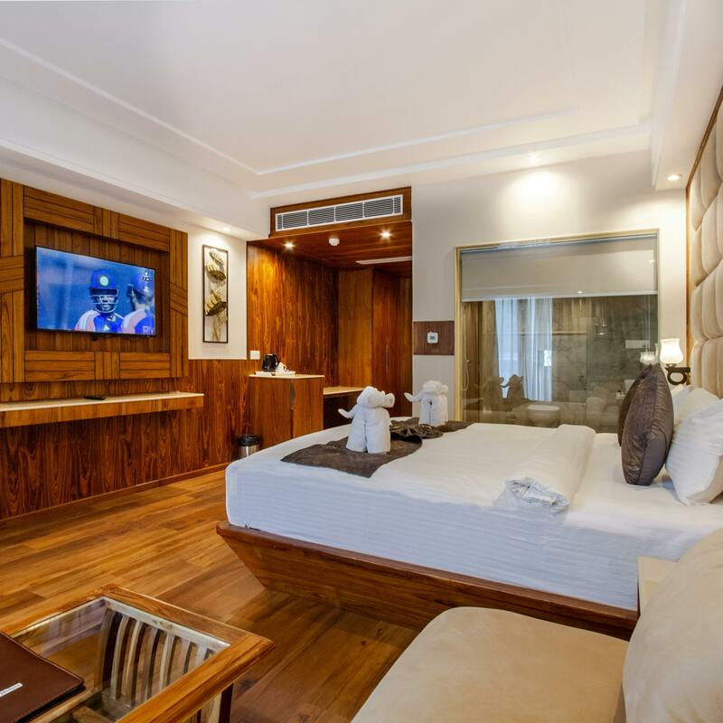 A spacious suite equipped with state-of-the-art technology, perfect for large presentations and corporate meetings. Capacity: 50 people. Price: $500 per day. Five images will show various angles and setups of this suite. Images: [2145267, 2145282, 2407650, 7396150, 7397411].